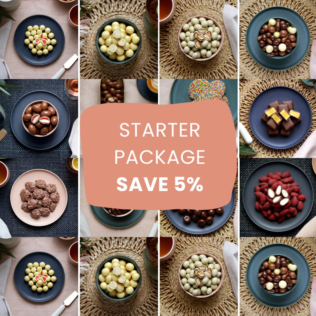 This starter package is filled with 10 of our best selling products in small quantities of 5 units each, a total of 50 units. It's a great way to try a range of products to see what your customers like best.